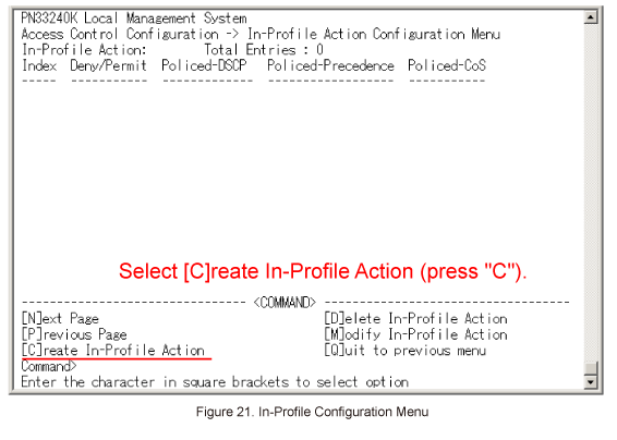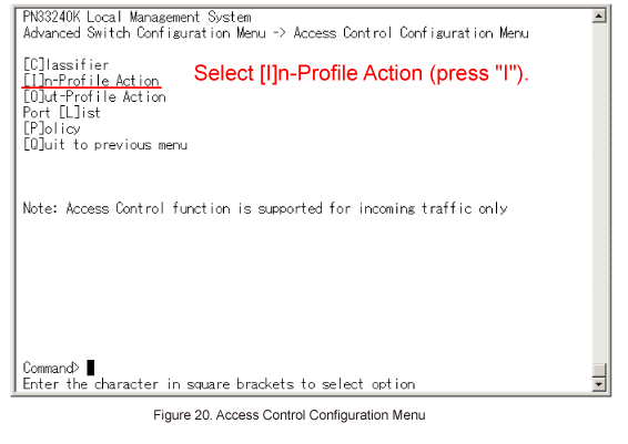 In Access Control Configuration Menu, select In-Profile Action. (Refer to Figure 20)
