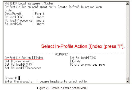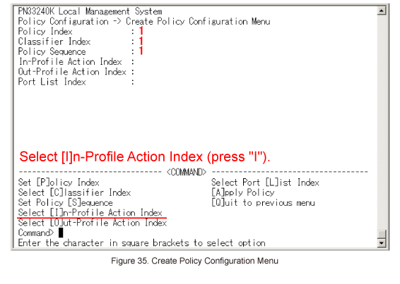 In Create Policy Configuration Menu, select Select [I]n-Profile Action Index. (Refer to Figure 35)