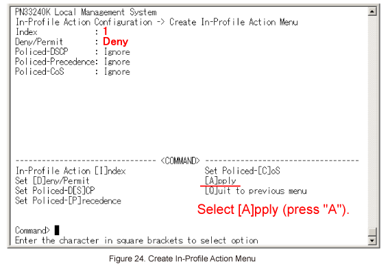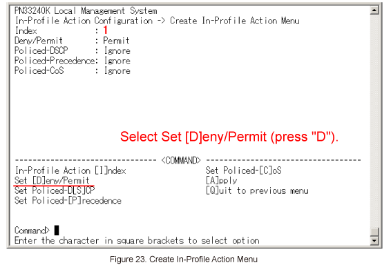 In Create In-Profile Action Menu, select Set [D]eny/Permit. (Refer to Figure 23)