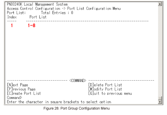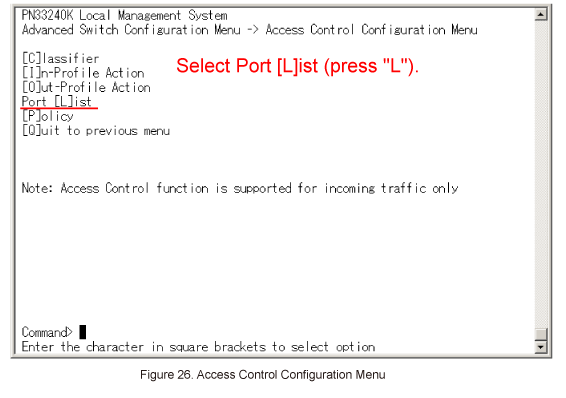 In Access Control Configuration Menu, select Port [L]ist. (Refer to Figure 26)
