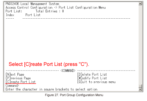 In Port List Configuration Menu, select [C]reate Port List. (Refer to Figure 27)