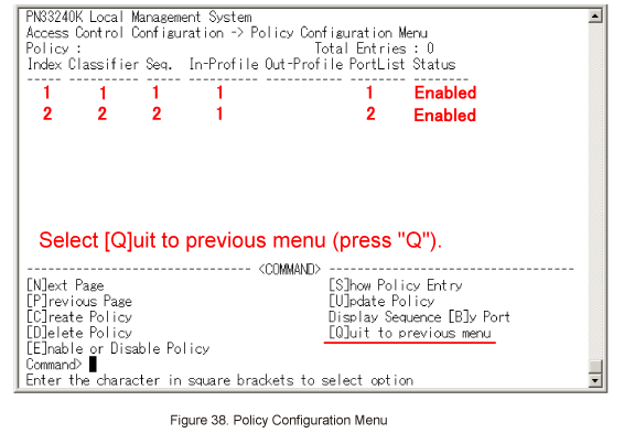 In Policy Configuration Menu, select [Q]uit to previous menu. (Refer to Figure 38)