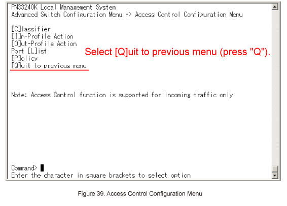 In Access Control Configuration Menu, select [Q]uit to previous menu. (Refer to Figure 39)