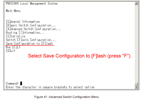 In Main Menu, select Save Configuration to [F]lash. (Refer to Figure 41)