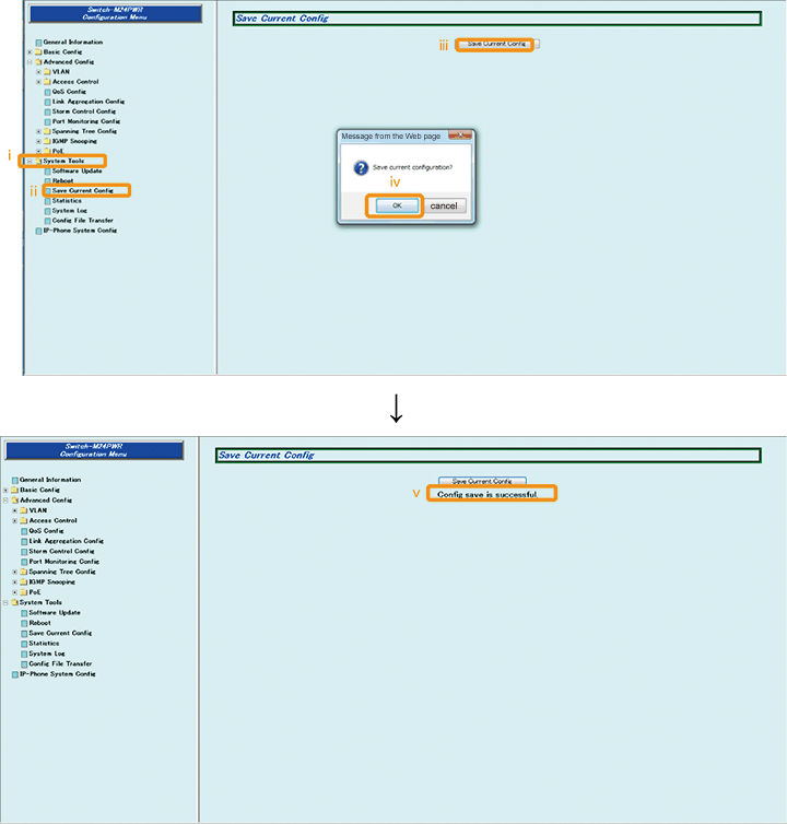 1) Select “System Tools” → ”Save Current Config”(i → ii).