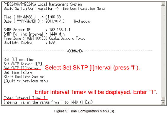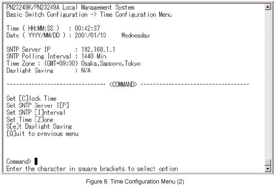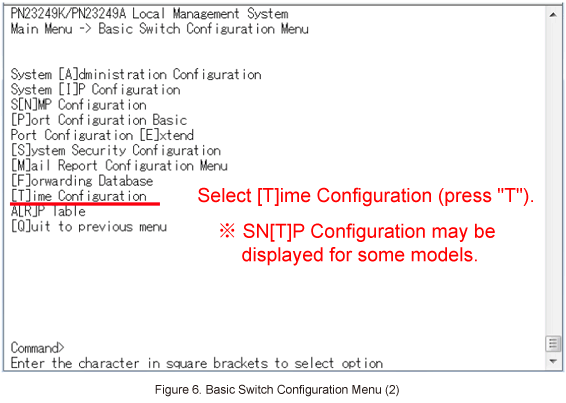 In Basic Switch Configuration Menu, select [T]ime Configuration. (Refer to Figure 6)