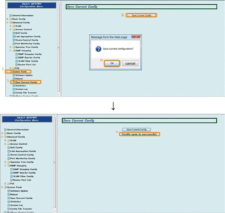 1) Select “System Tools” → ”Save Current Config”(i → ii).