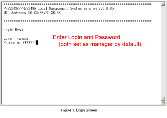 On the login screen, enter Login and Password (both set as manager by default), and login to the setting screen. (Refer to Figure 1)