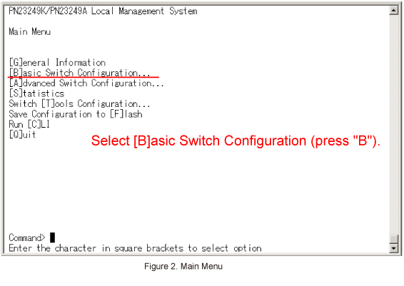 In Main Menu, select [B]asic Switch Configuration. (Refer to Figure 2)