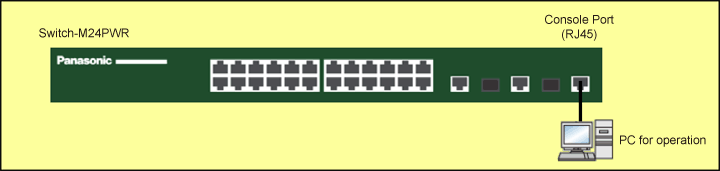 Connect the PC and Ethernet Switch using a twisted pair cable and console cable, and display the setting screen on Hyper terminal.