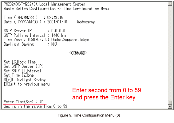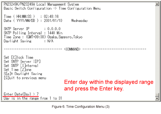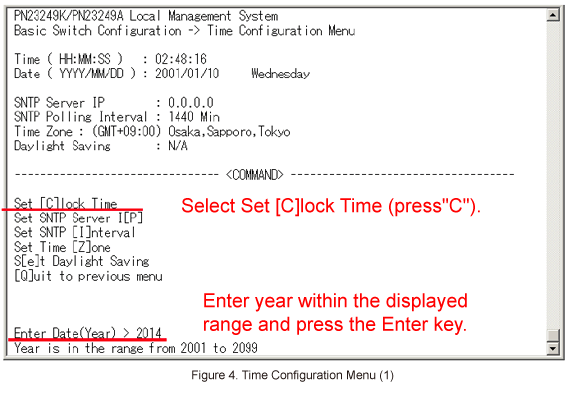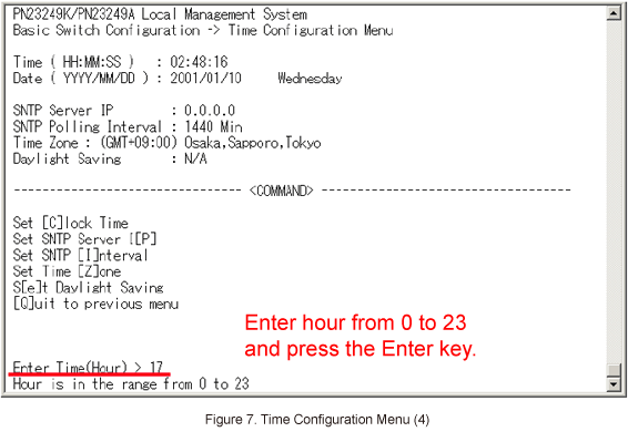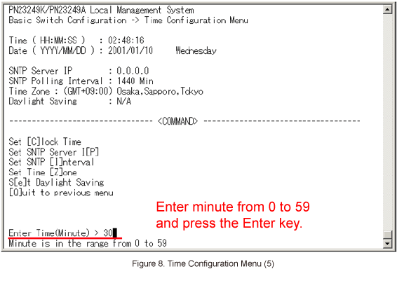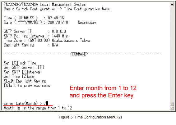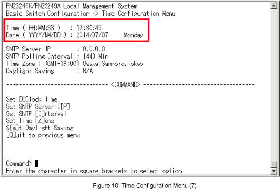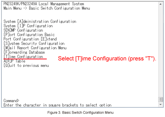 In Basic Switch Configuration Menu, select [T]ime Configuration. (Refer to Figure 3)