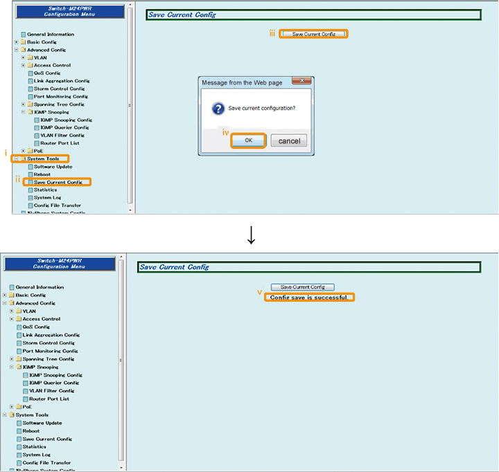 1) Select “System Tools” → ”Save Current Config”(i → ii).