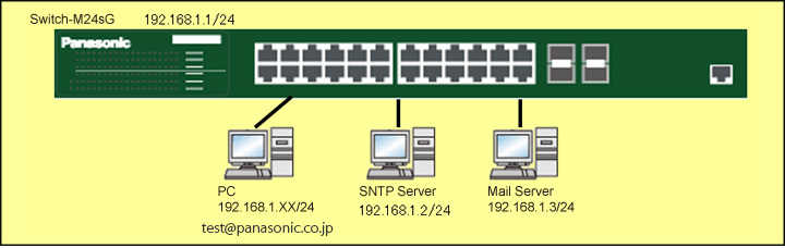 Referring to the configuration diagram, connect Switch-M24sG, the mail server, and the PC.