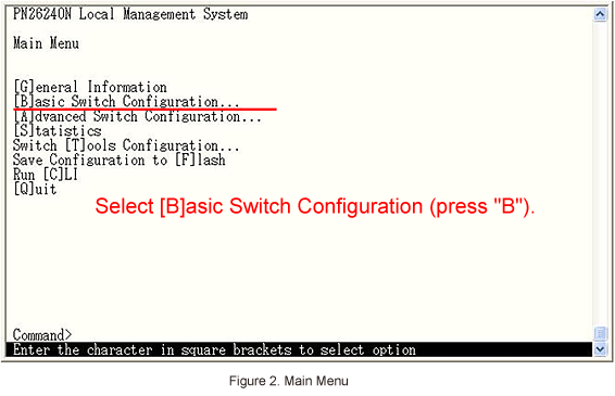In Main Menu, select [B]asic Switch Configuration. (Refer to Figure 2)