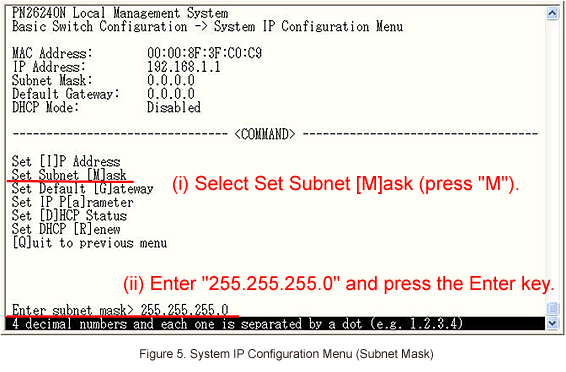 Then, select Set Subnet [M]ask and enter the subnet mask (255.255.255.0). (Refer to Figure 5)
