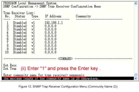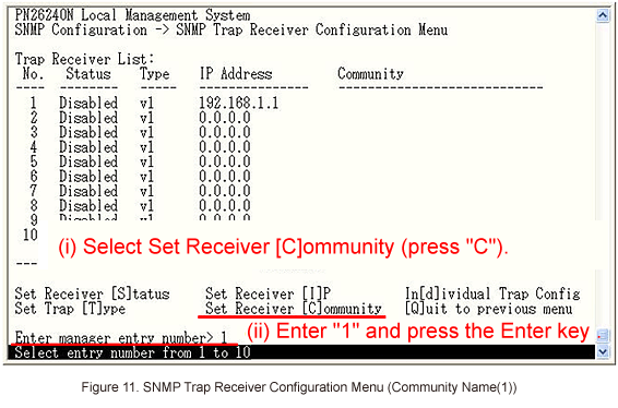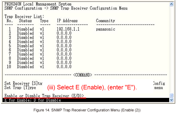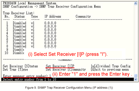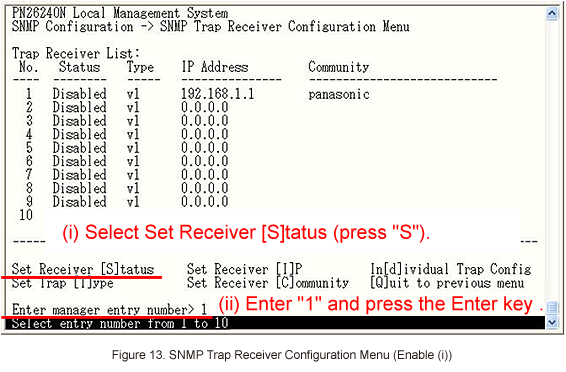 Then, select Set Receiver [S]tatus to enable trap notification. (Refer to Figures 13 and 14)