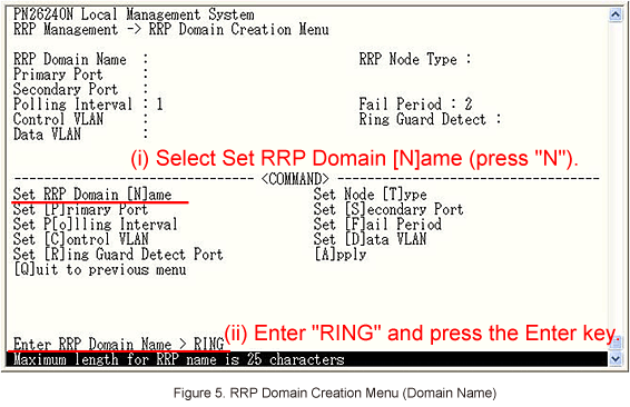 In RRP Domain Creation Menu, select Set RRP Domain [N]ame to enter the domain name (RING). (Refer to Figure 5)