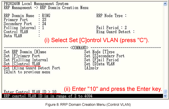 Then, select Set [C]ontrol VLAN to set the control VLAN (VLAN ID 10). (Refer to Figure 8)