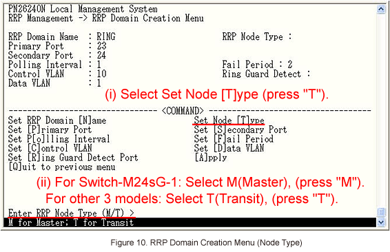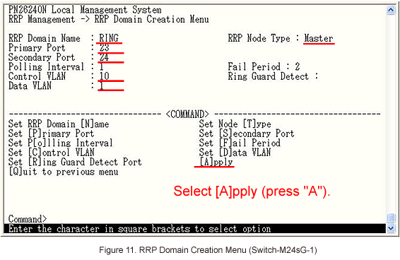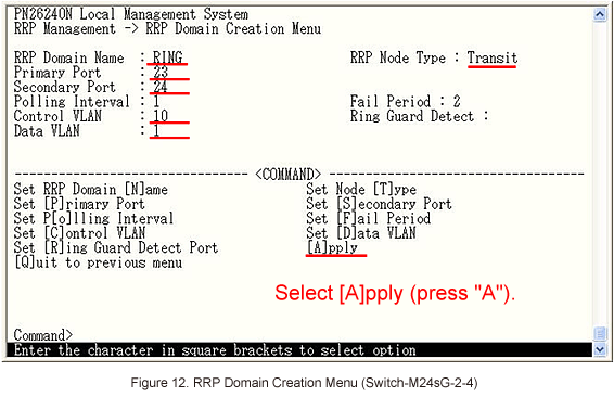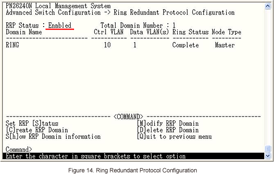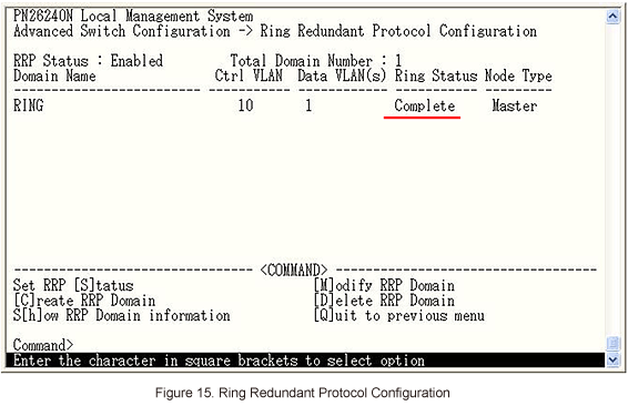 In Ring Redundant Protocol Configuration, select [C]reate RRP Domain to set ring protocol. (Refer to Figure 4)