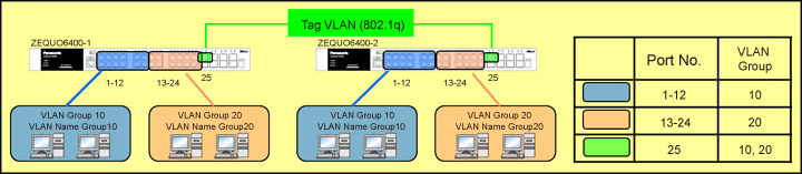 This setting example explains the VLAN setup for ZEQUO series switches.