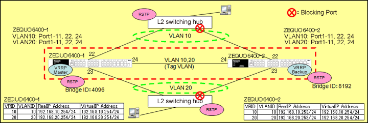 This setting example explains the procedure of VRRP setting for ZEQUO series switches.
