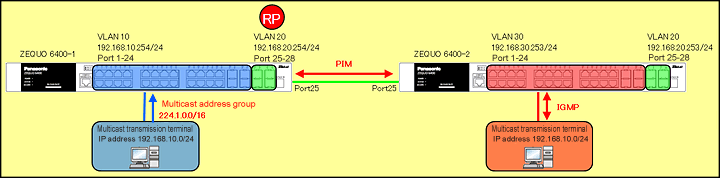 This procedure describes how to set multicast routing for the ZEQUO series switches to enable multicast to transfer from a transmission terminal to reception terminals via appropriate routes.