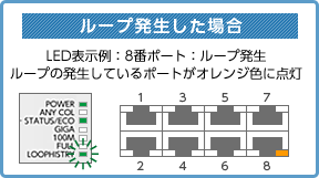 また、ループ解消後にもループが発生したポートをLEDでお知らせします。