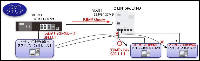 この設定例では、CiLIN-5PoE+PDのIGMPスヌーピング設定について説明します。