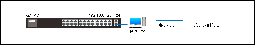 PCとスイッチングハブをツイストペアケーブルで接続し、Web画面にてログイン画面を表示します。