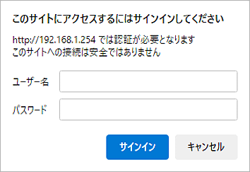 ユーザ名・パスワードの設定変更を行います。(旧ユーザ名・パスワード:manager、新ユーザ名・パスワード:admin)