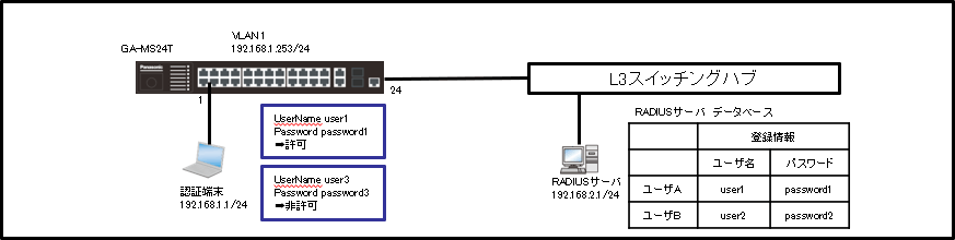 この設定例では、GA-MSシリーズのWEB認証設定について説明します。