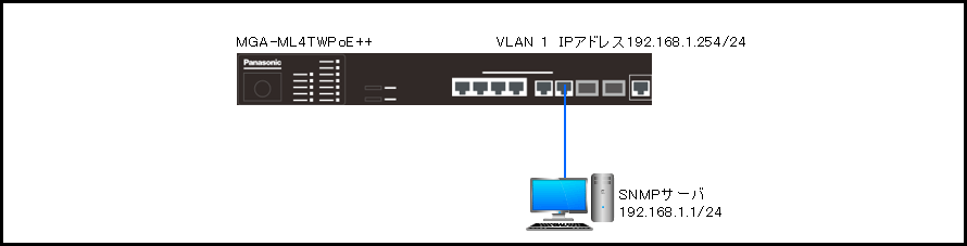 - SNMPサーバ(IPアドレス:192.168.1.1)からMGA-ML4TWPoE++をSNMPで監視します。