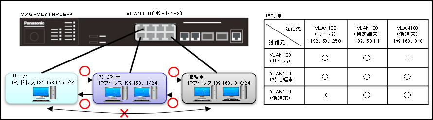 この設定例では、MXGシリーズのVLAN ACL設定について説明します。