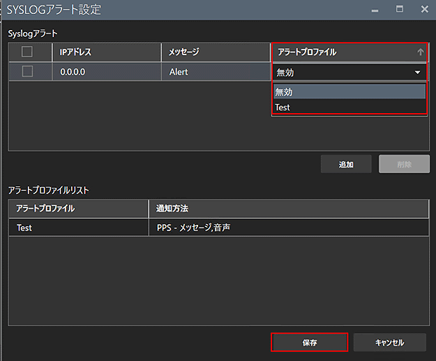 6) アラートプロファイルを選択し、「保存」をクリックします。