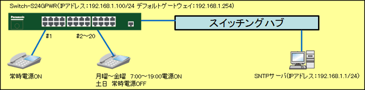 ※PoEスケジューラを動作させるためには、SNTPによりサーバと時刻同期していることが必須となります。