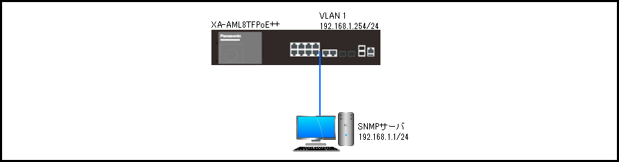 - SNMPサーバ(IPアドレス:192.168.1.1)からXA-AML8TFPoE++をSNMPで監視します。