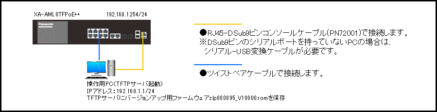 この設定例では、XAシリーズのTFTPによるファームウェアバージョンアップについて説明します。
