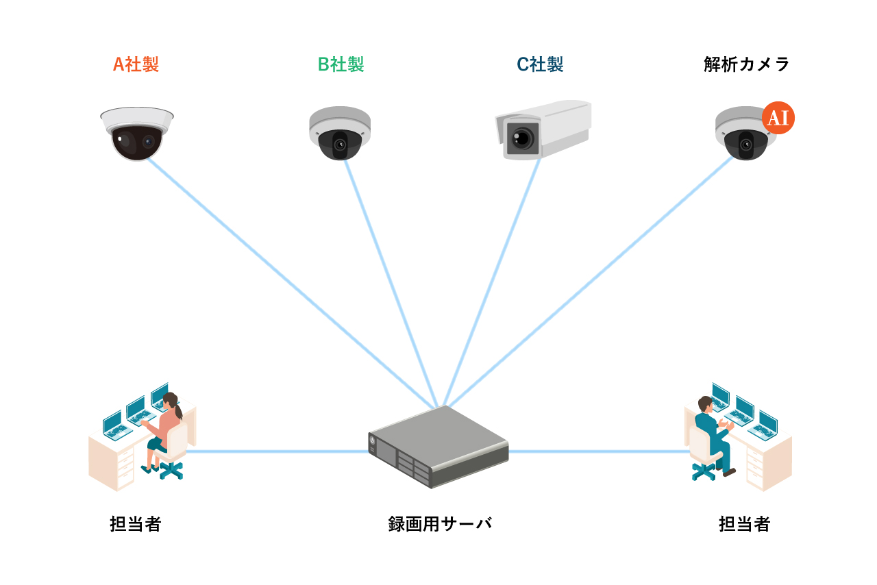 VMSによっては、防犯・監視カメラのメーカーに縛られることがありません。どのメーカーでも互換性があり、柔軟にシステムを構築可能です。また、カメラの台数を増やしたり、カメラ設置拠点の追加も簡単に行えます。