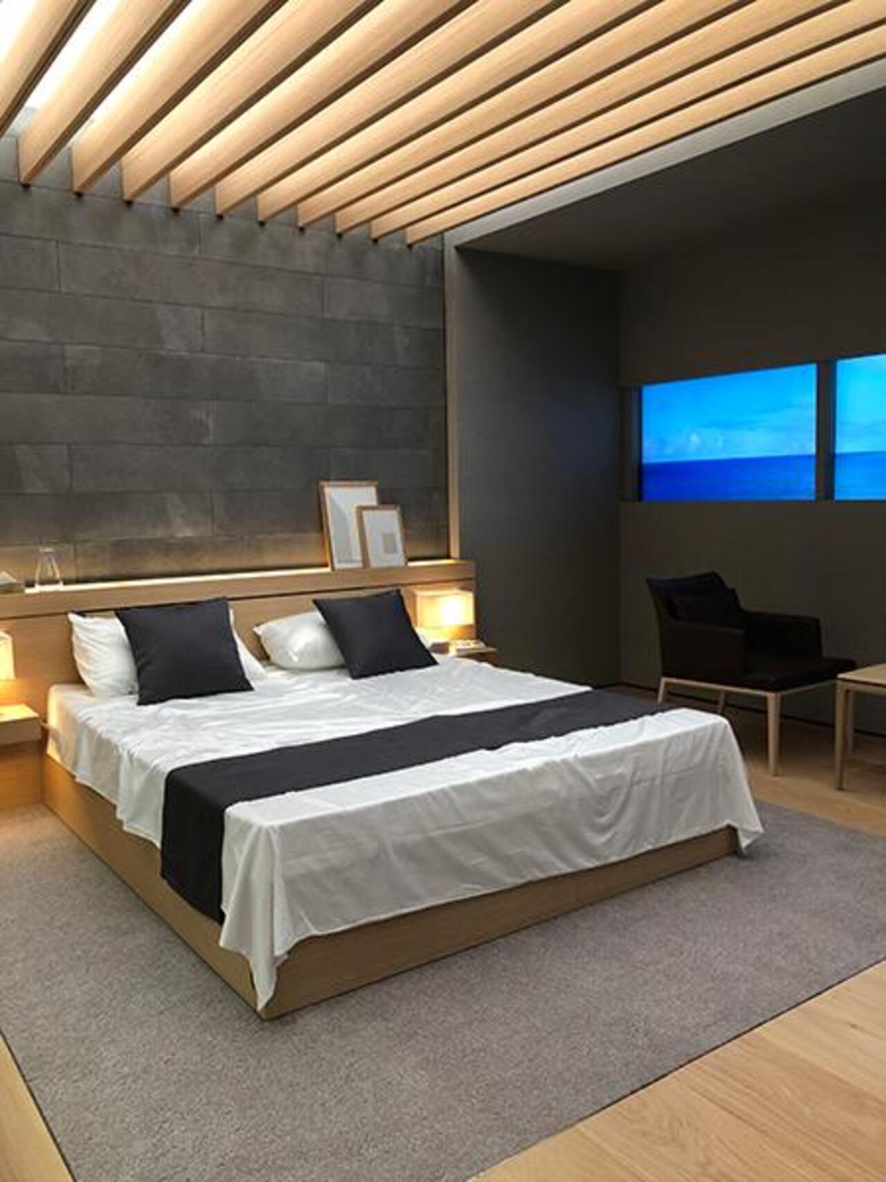 ホテルや住宅などを想定した寝室空間と、トレーニングルームの2つの小型クローズ空間でのソリューション提案となっています。