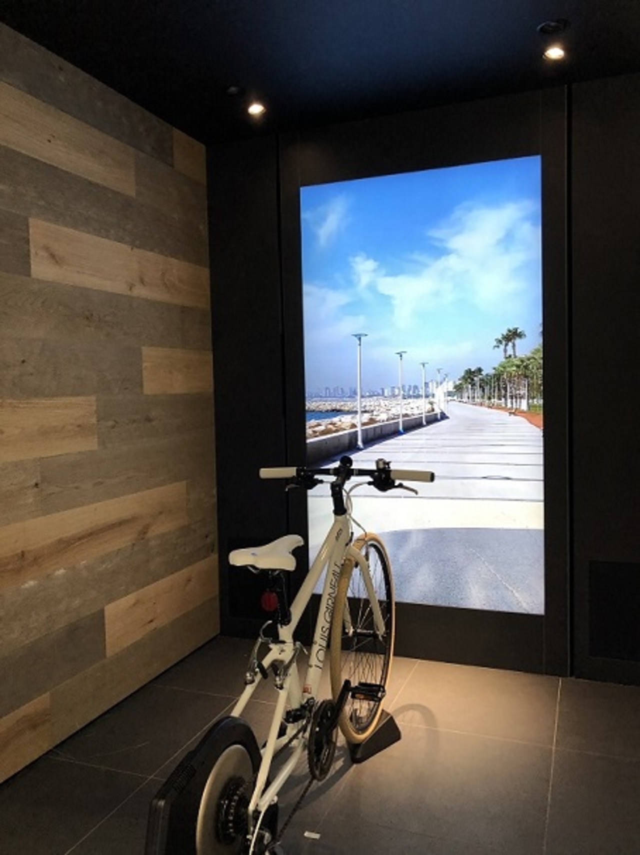 自転車で走る映像に合わせて温度・湿度・気流・香りを制御した空気を供給し、より一層臨場感のあるVR空間を作り出すシステムです。