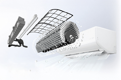 2005年に初めて搭載されたフィルターお掃除ロボット。搭載機種は、2022年、累計出荷台数1,000万台を突破するに至りました。長年の改良により、フィルターに付着するホコリをダストボックスに自動で回収、屋外へ排出までおこないます。清潔な空気環境を維持しながら、フィルター目詰まりによる電力ロスも防いでいます。しかも、一部機種では、ナノイーX 内部クリーンにより、エアコン内部のカビ菌を自動で除菌※4・抑制※5することができます※6。つまり、清潔さと省エネの両面で貢献してくれる働き者です。
