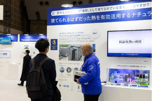 来場者の関心を集めたのは、工場等の「廃熱」を有効活用する「廃熱利用型ナチュラルチラー」です。従来、本システムの利用には80℃以上の熱源が必要とされていましたが、パナソニックは現在、70℃の低温廃熱でも稼働可能な技術の確立に向けて開発を進めています。これが実用化されれば、これまで捨てられていた熱エネルギーの活用範囲を大きく広げることが可能になります。ブースでは、水素燃料電池から発生する廃熱と本システムを組み合わせた実証実験(PoC)の事例を紹介。この取り組みはその先進性が評価され、2025年度の「コージェネ大賞優秀賞」を受賞しています。