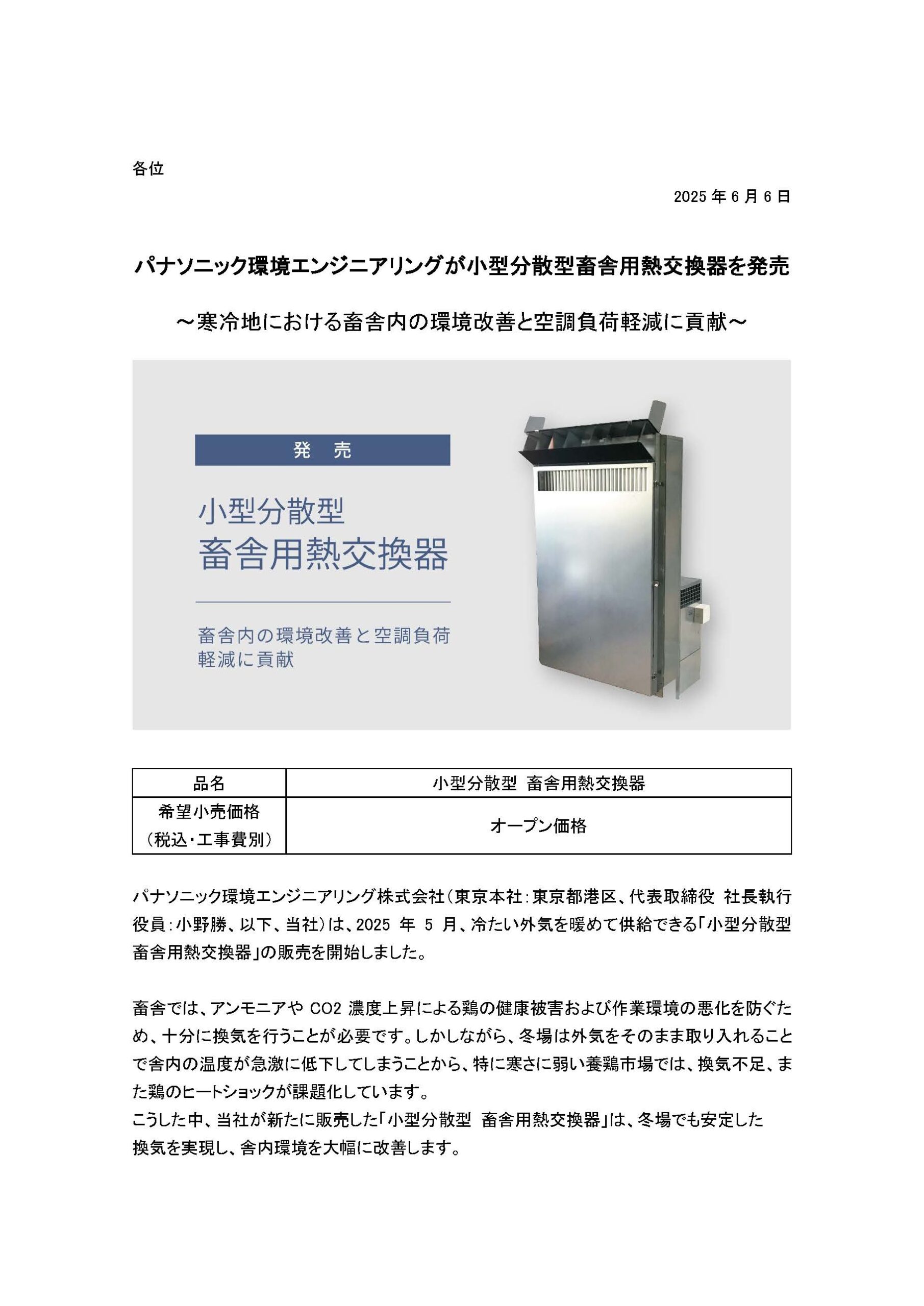 PDF「小型分散型 畜舎用熱交換器が販売開始しました」はこちら
