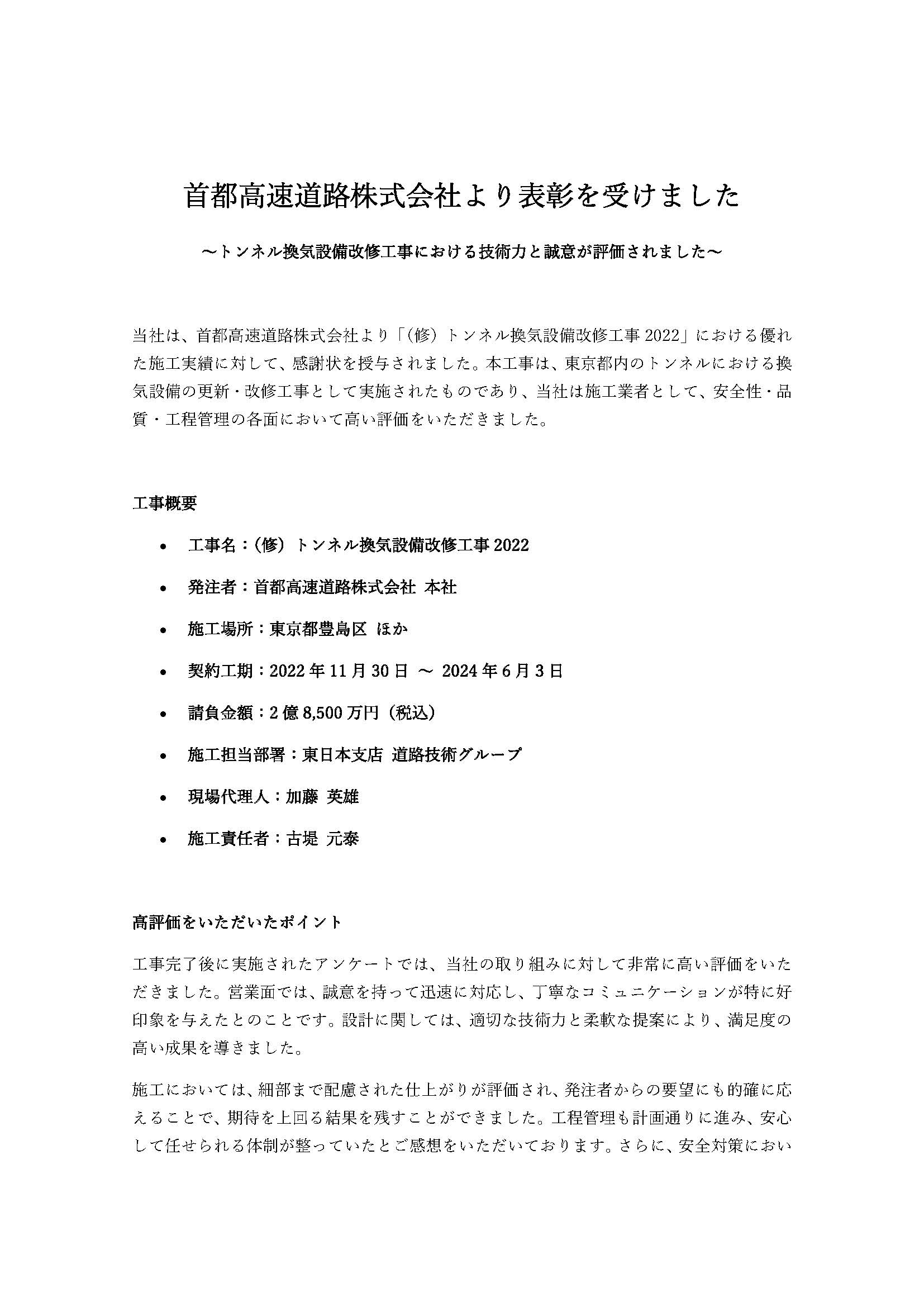 PDF「首都高速道路株式会社より表彰を受けました」はこちら