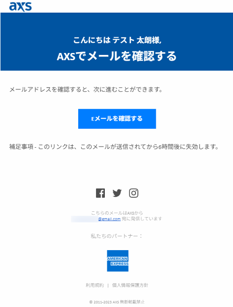 AXSにご登録いただいたメールアドレス、パスワードになります。