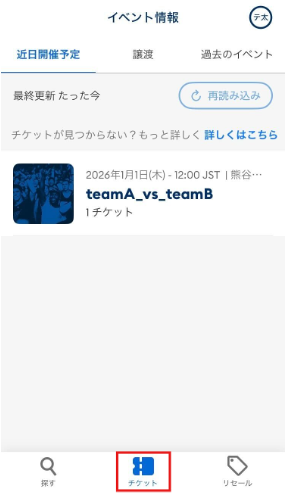 「近日開催予定」…今後開催予定の試合のチケットが表示されます。